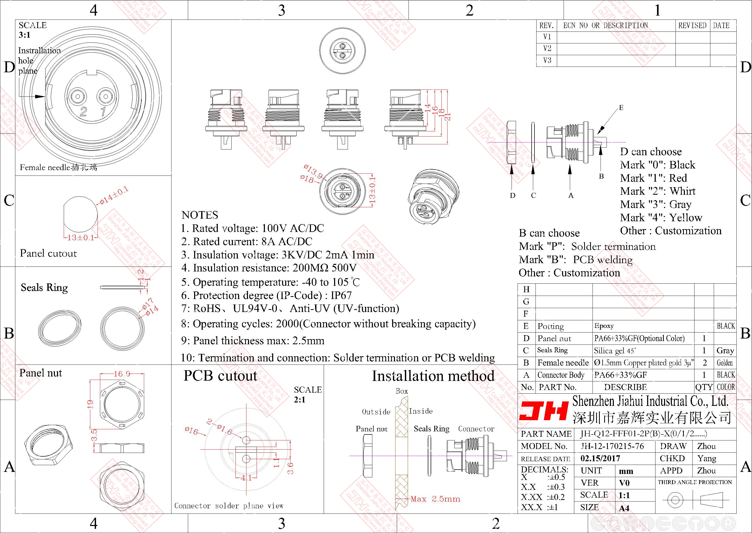 4、Quick lock connect design , Panel cutout 14mm, Panel thickness max.:2.5mm.