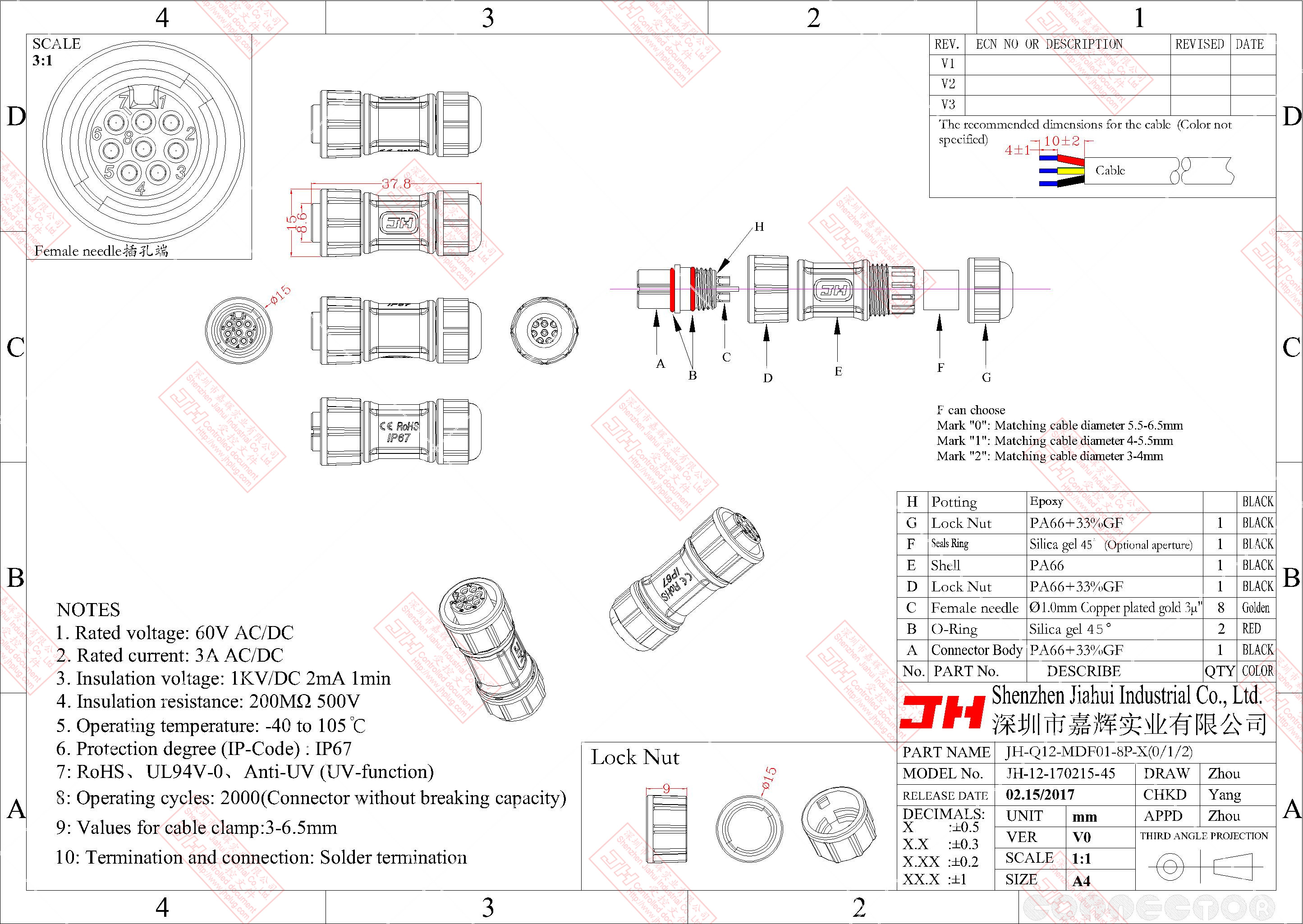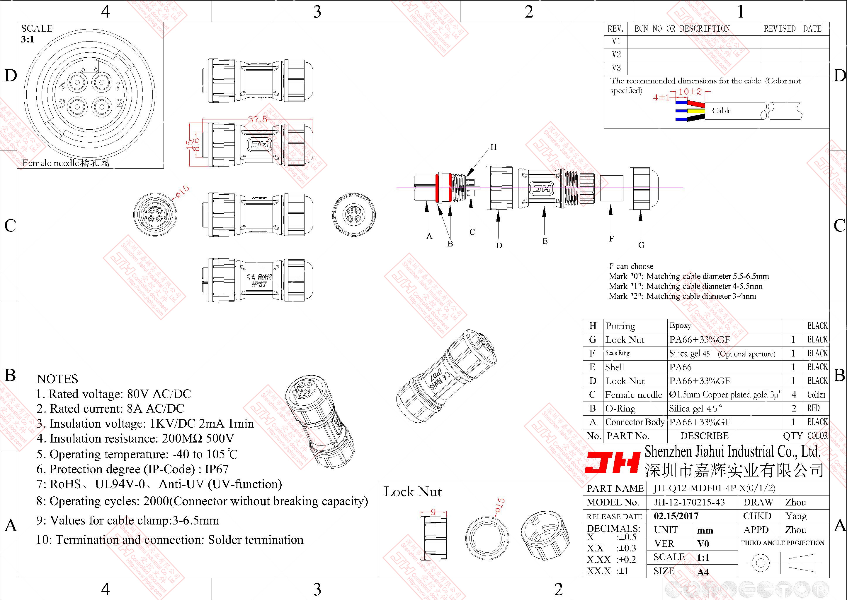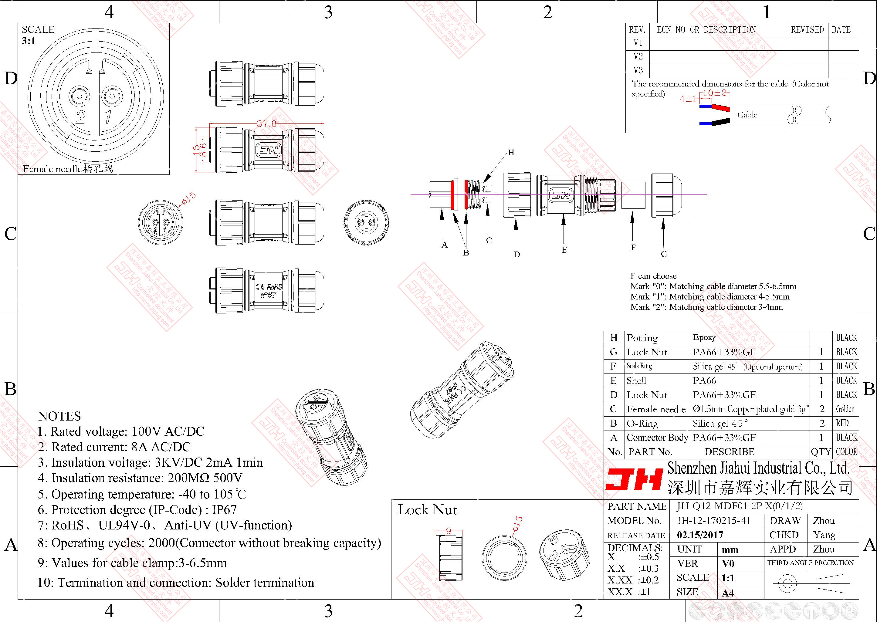 3、尼龍材質(zhì),穩(wěn)定的電氣性能,高強(qiáng)的抗耐壓,抗高溫,抗爆,抗腐蝕性。