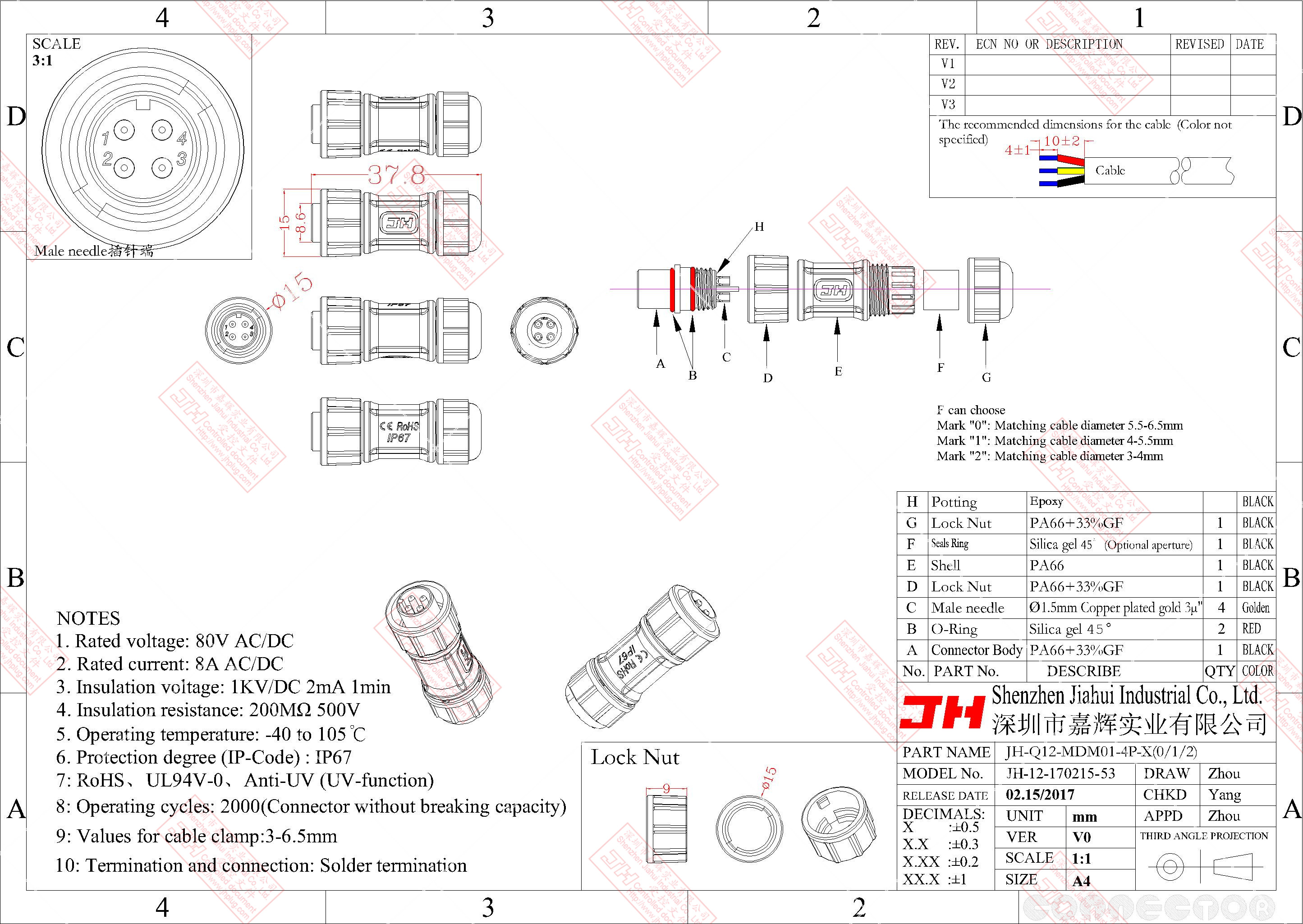 3、尼龍材質(zhì),穩(wěn)定的電氣性能,高強(qiáng)的抗耐壓,抗高溫,抗爆,抗腐蝕性。