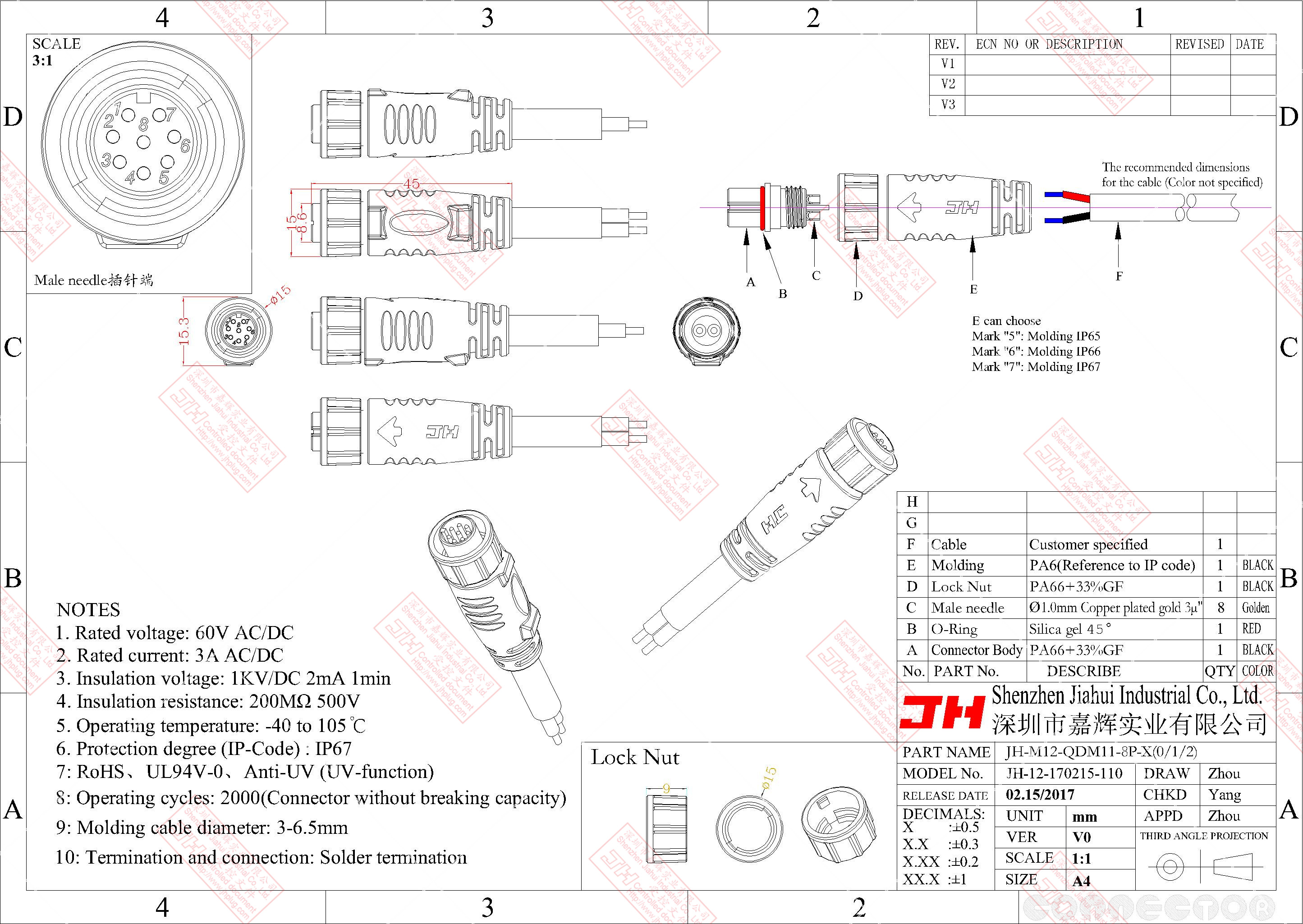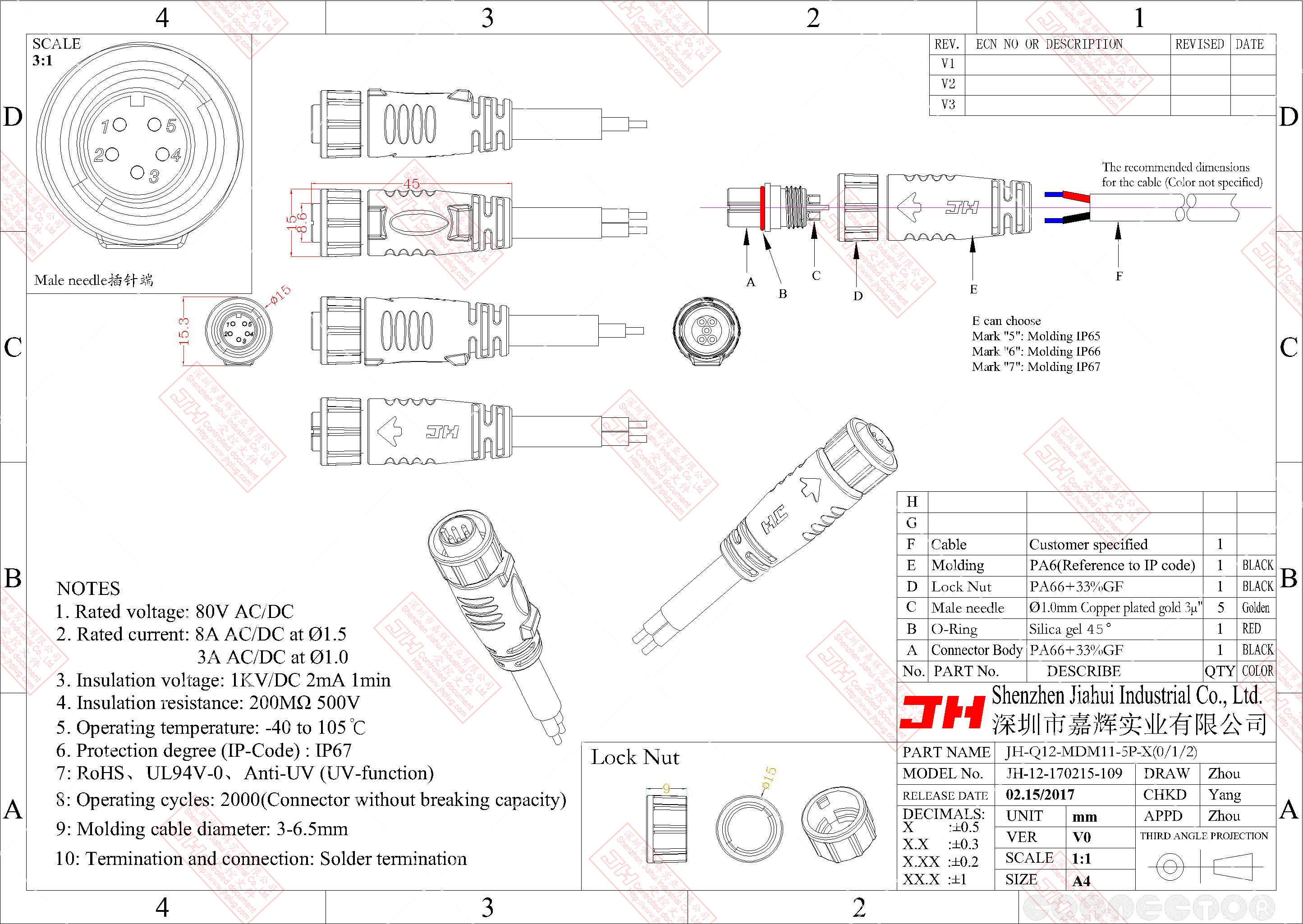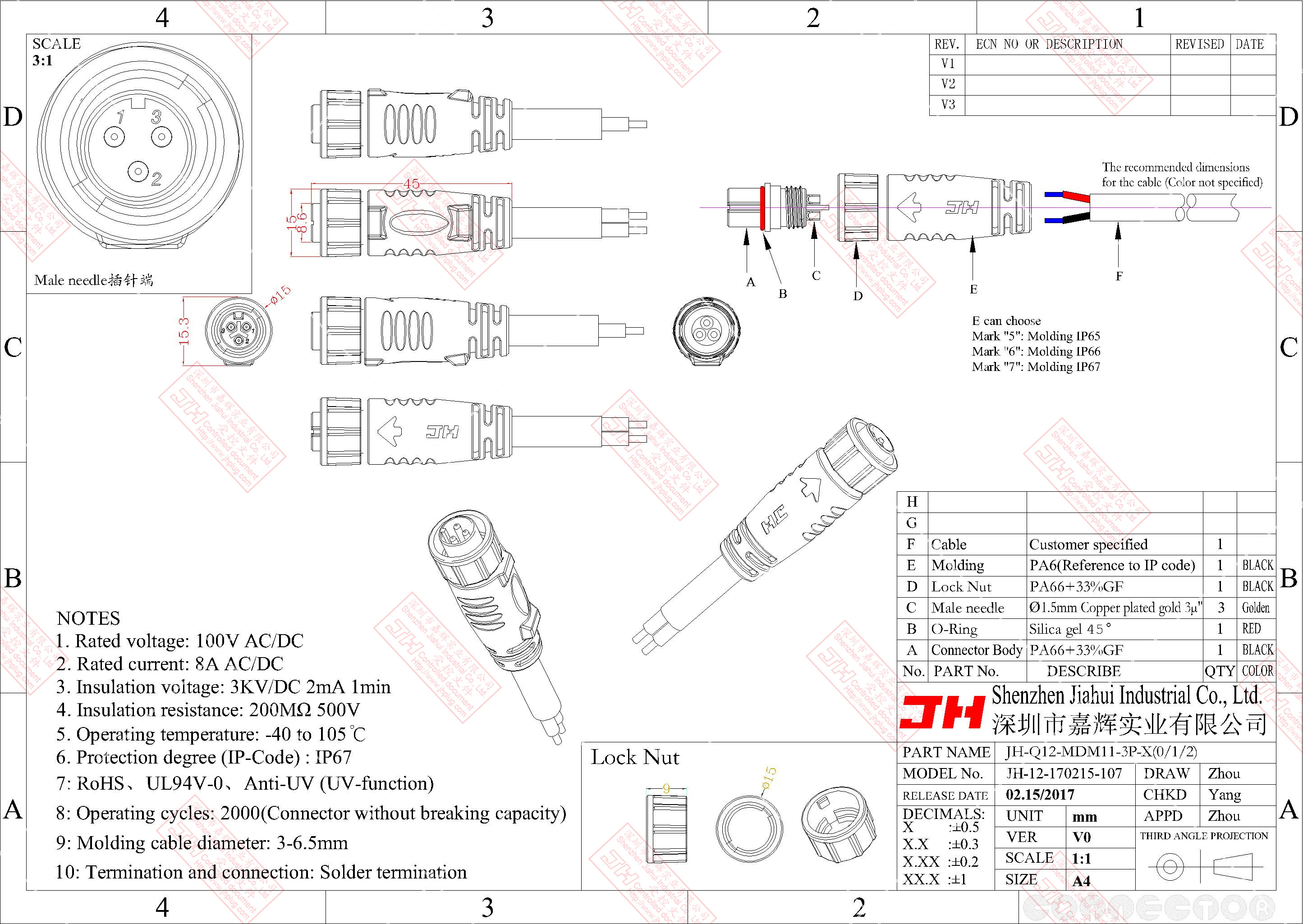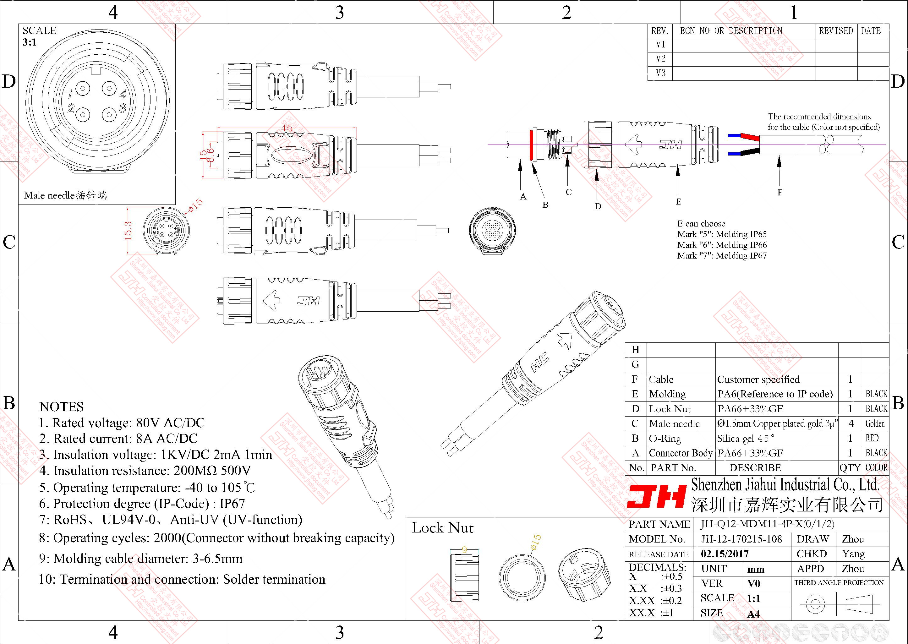 3、尼龍材質,穩(wěn)定的電氣性能,高強的抗耐壓,抗高溫,抗爆,抗腐蝕性。
