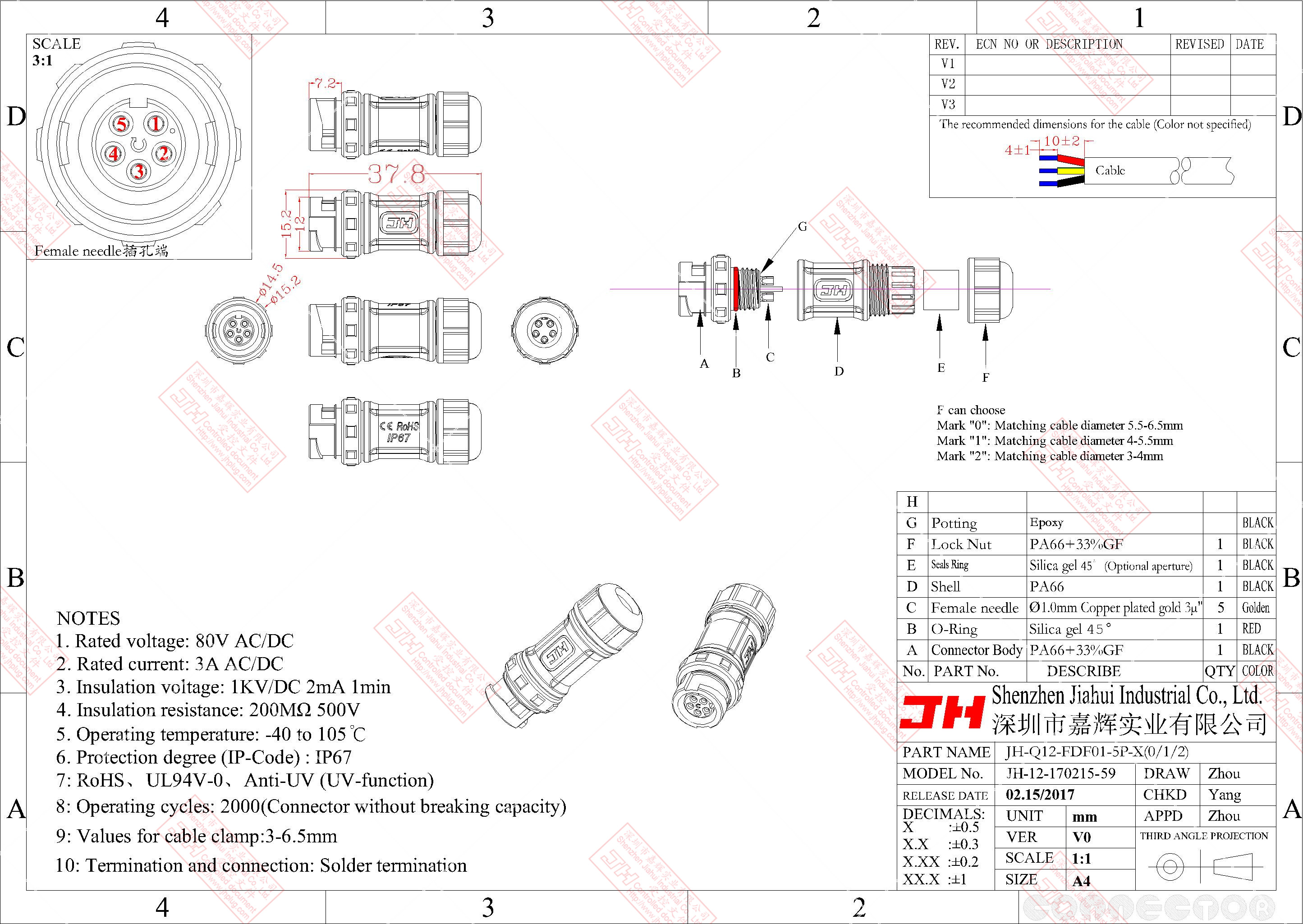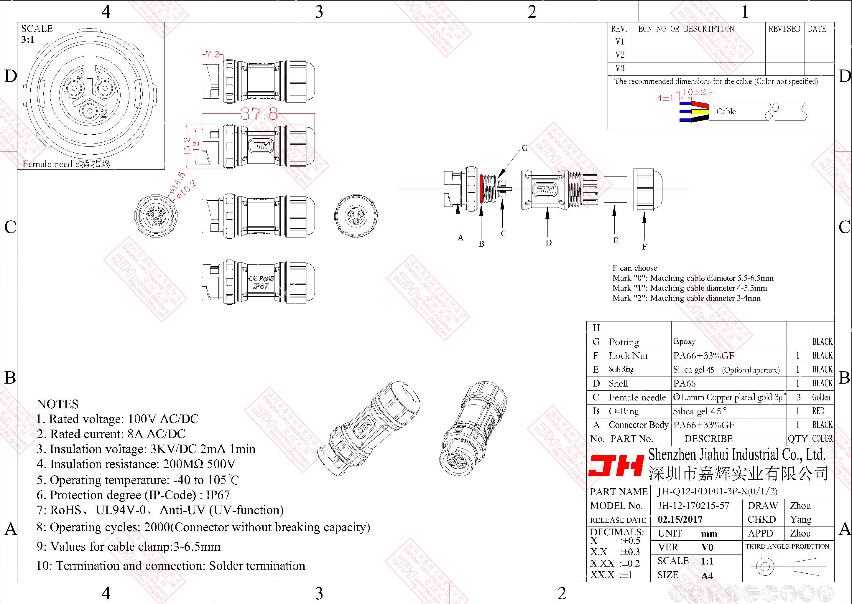 3、尼龍材質,穩(wěn)定的電氣性能,高強的抗耐壓,抗高溫,抗爆,抗腐蝕性。