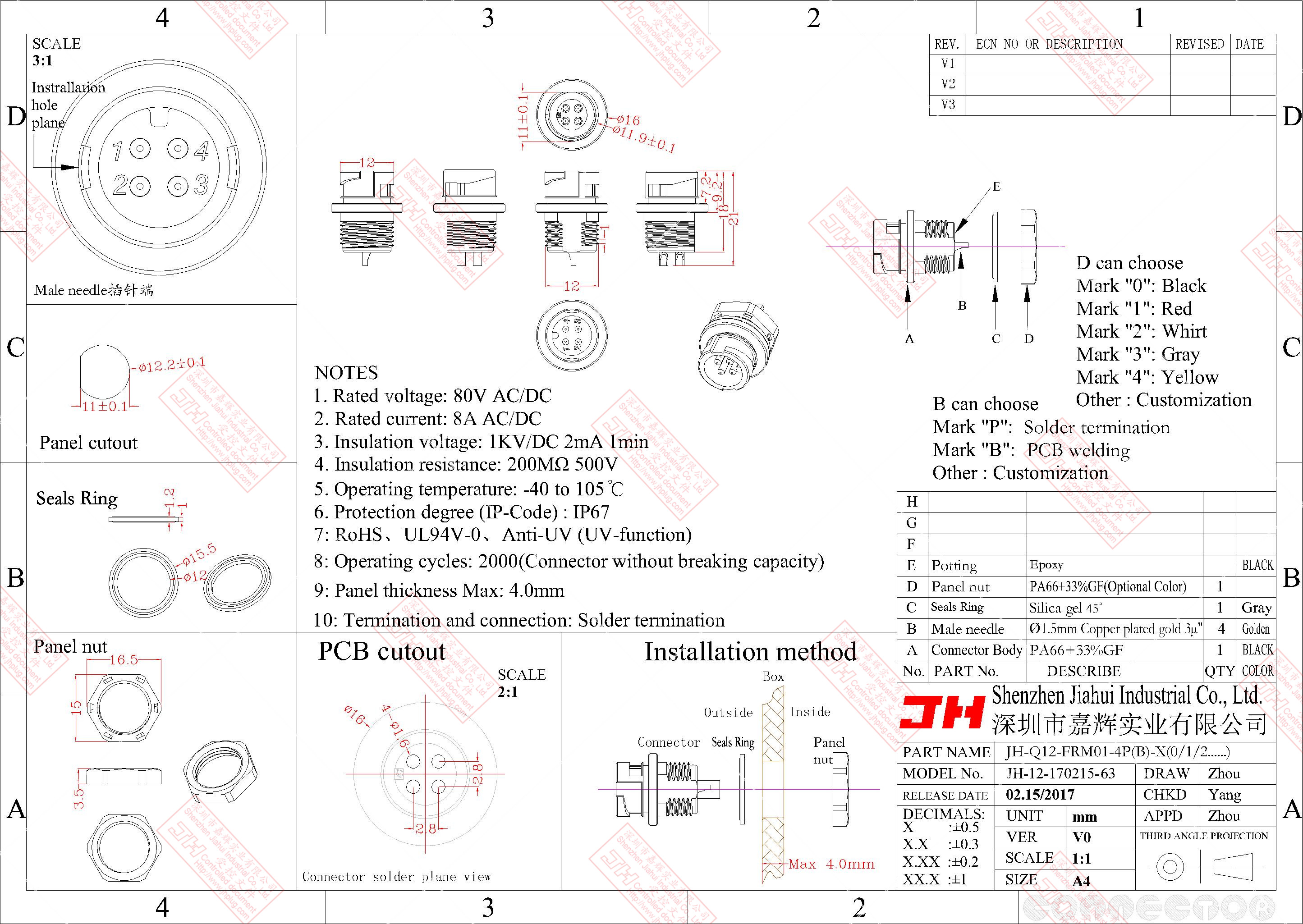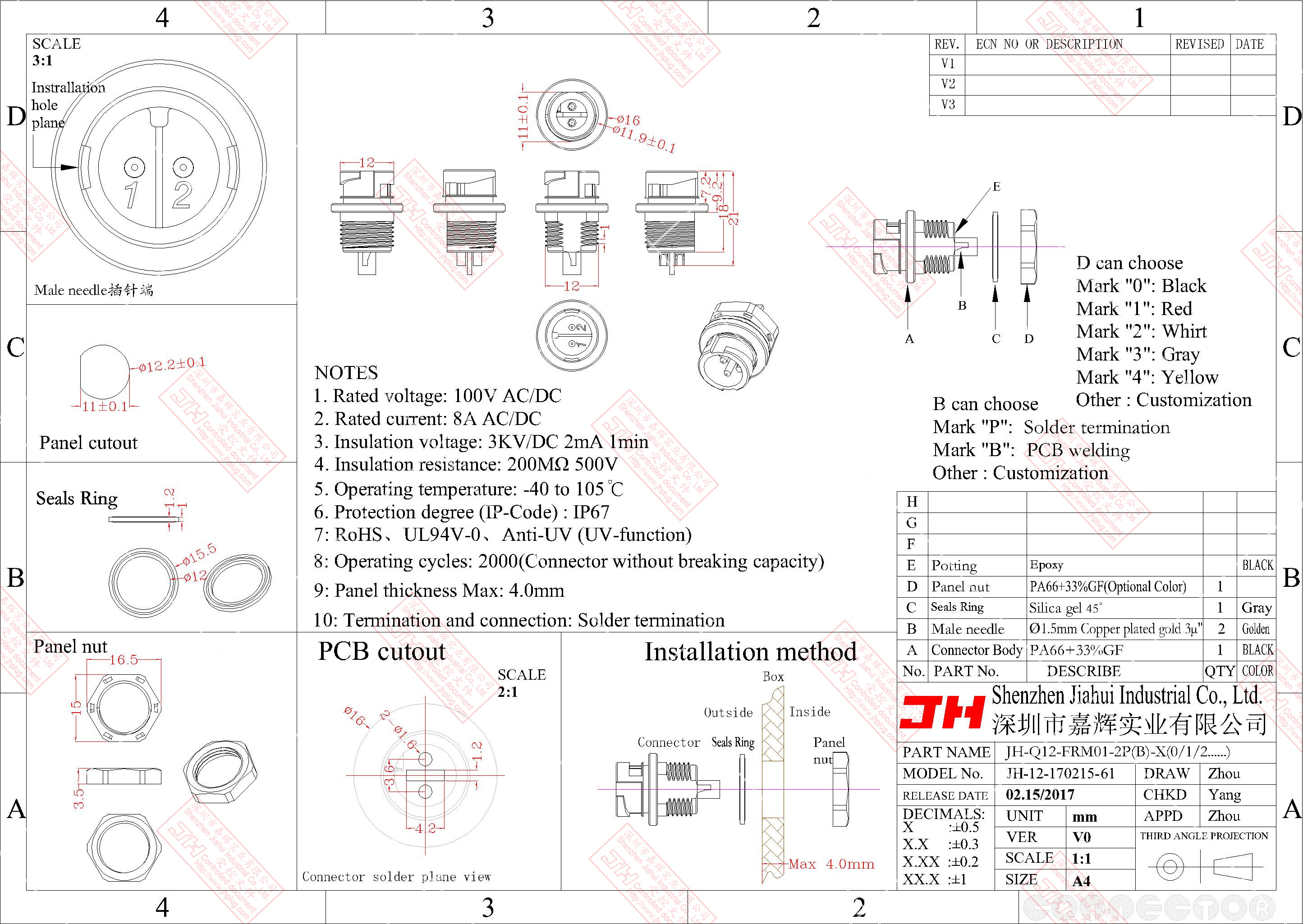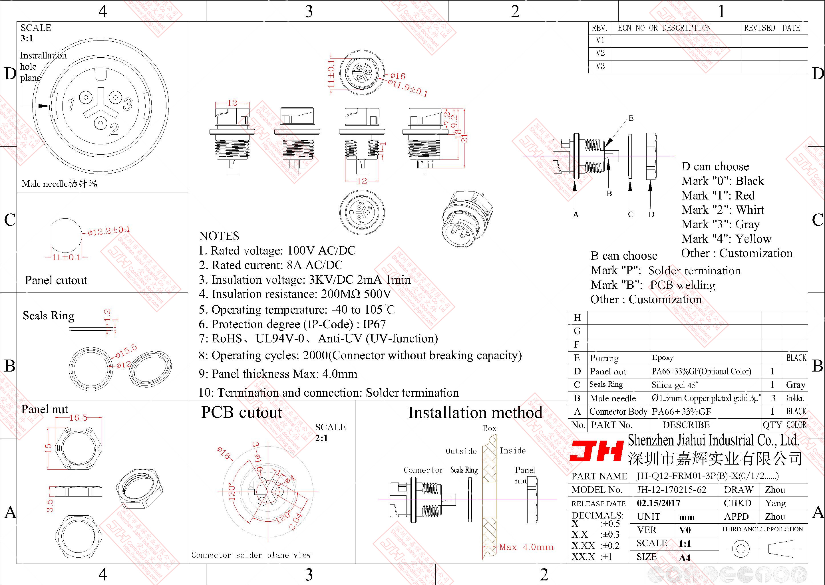 4、標(biāo)準(zhǔn)M12×1.0國標(biāo)螺牙設(shè)計(jì),開孔12mm,箱體最大厚度4mm