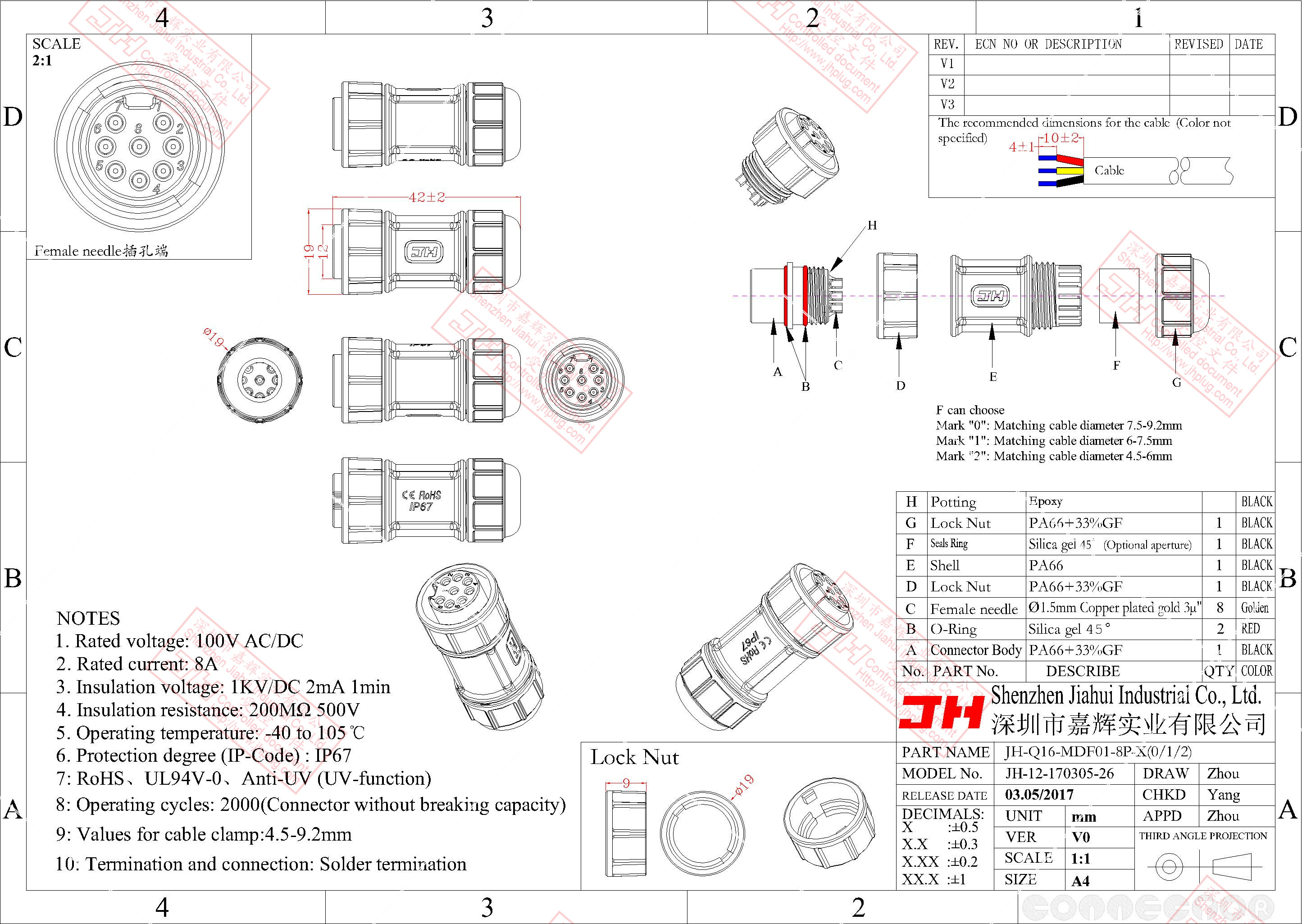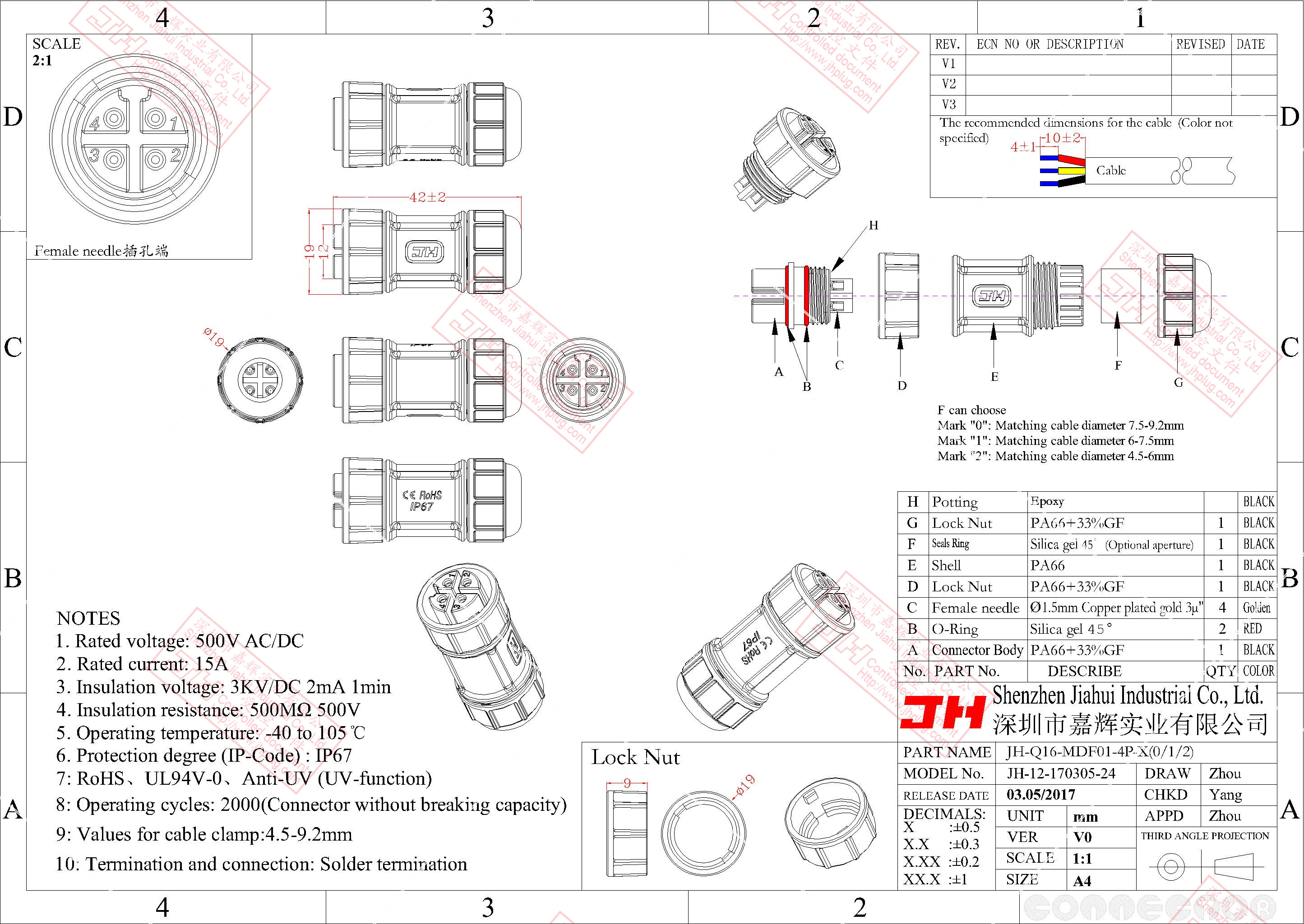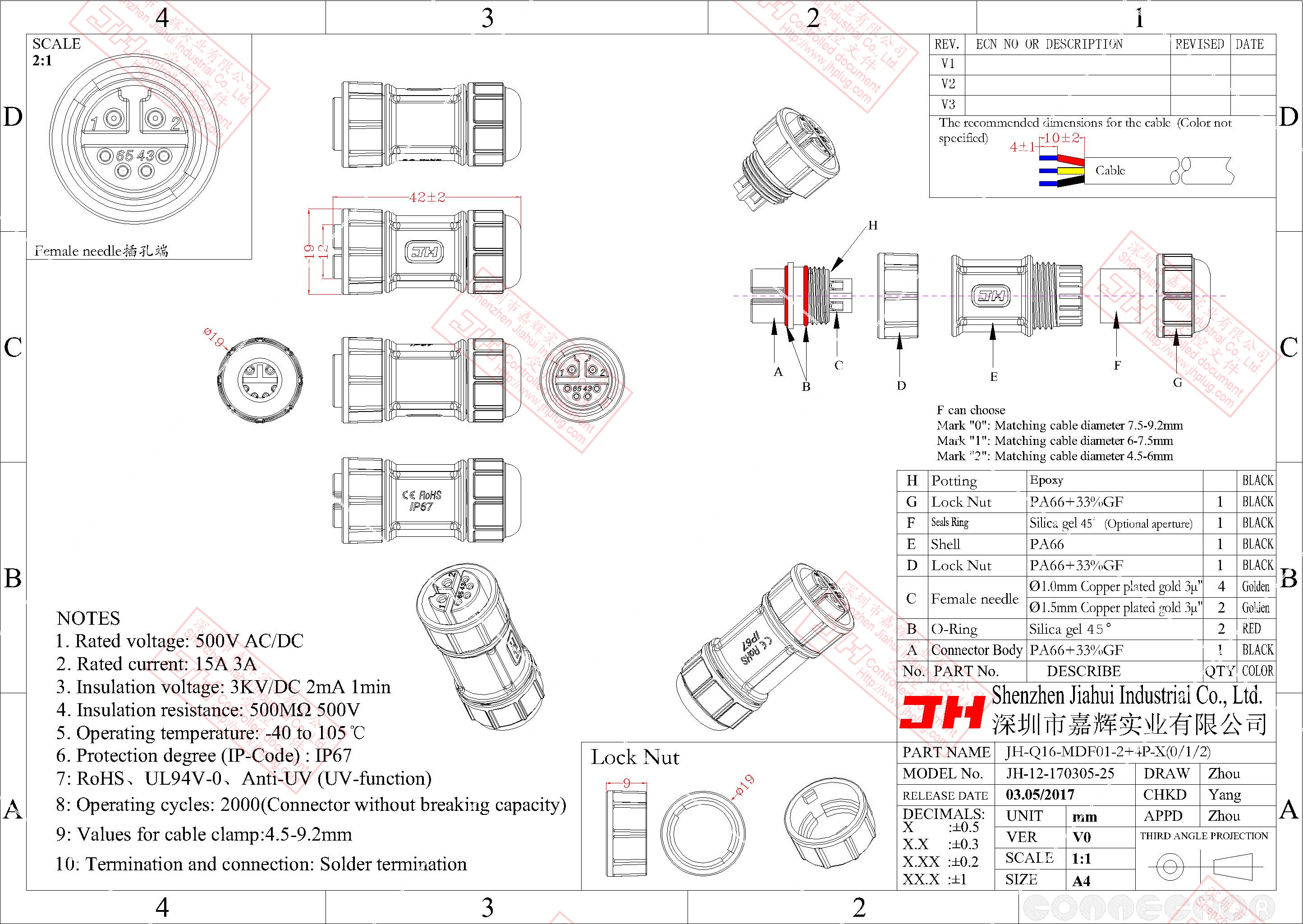 3、尼龍材質(zhì),穩(wěn)定的電氣性能,高強的抗耐壓,抗高溫,抗爆,抗腐蝕性。