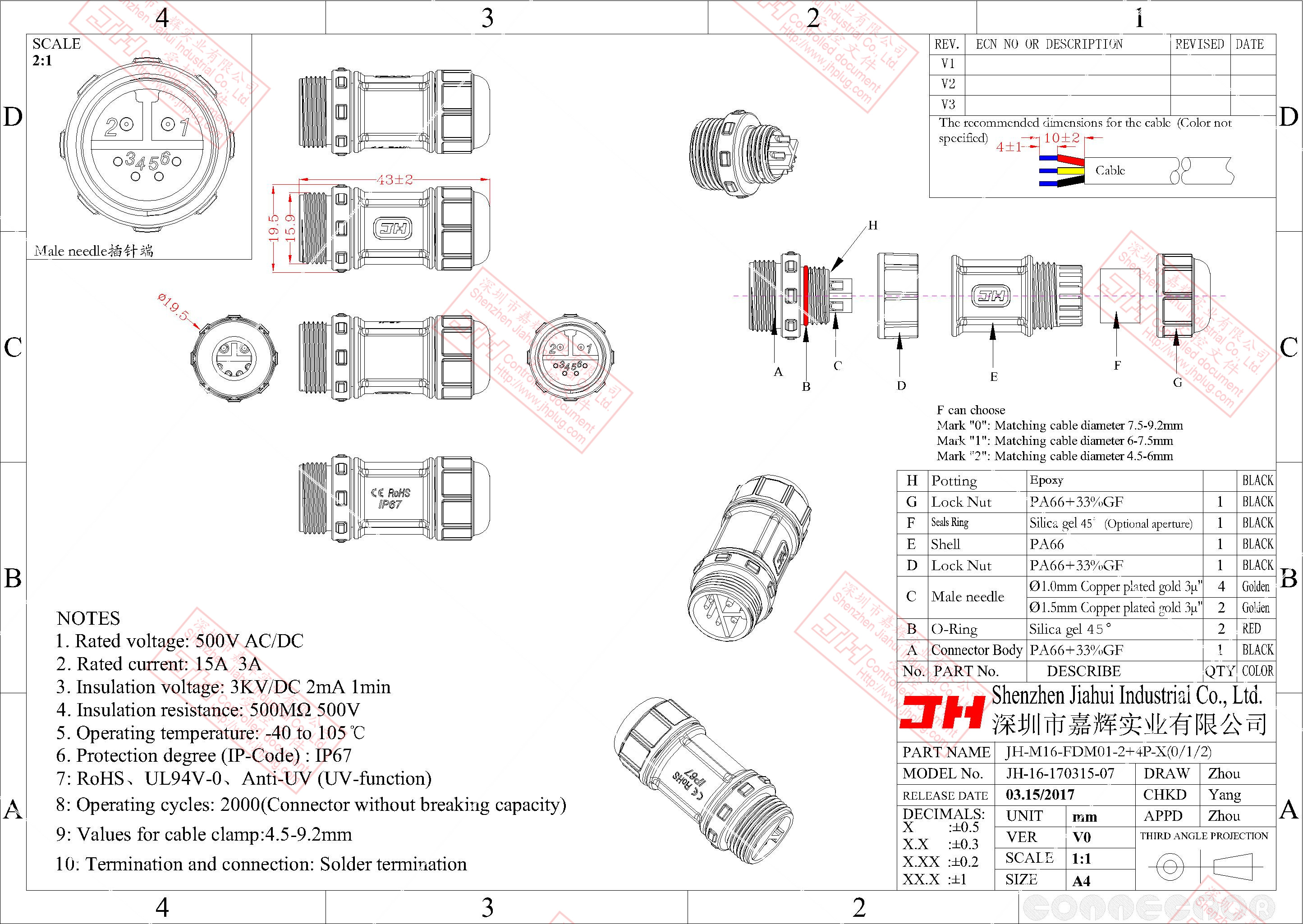 3、尼龍材質(zhì),穩(wěn)定的電氣性能,高強(qiáng)的抗耐壓,抗高溫,抗爆,抗腐蝕性。