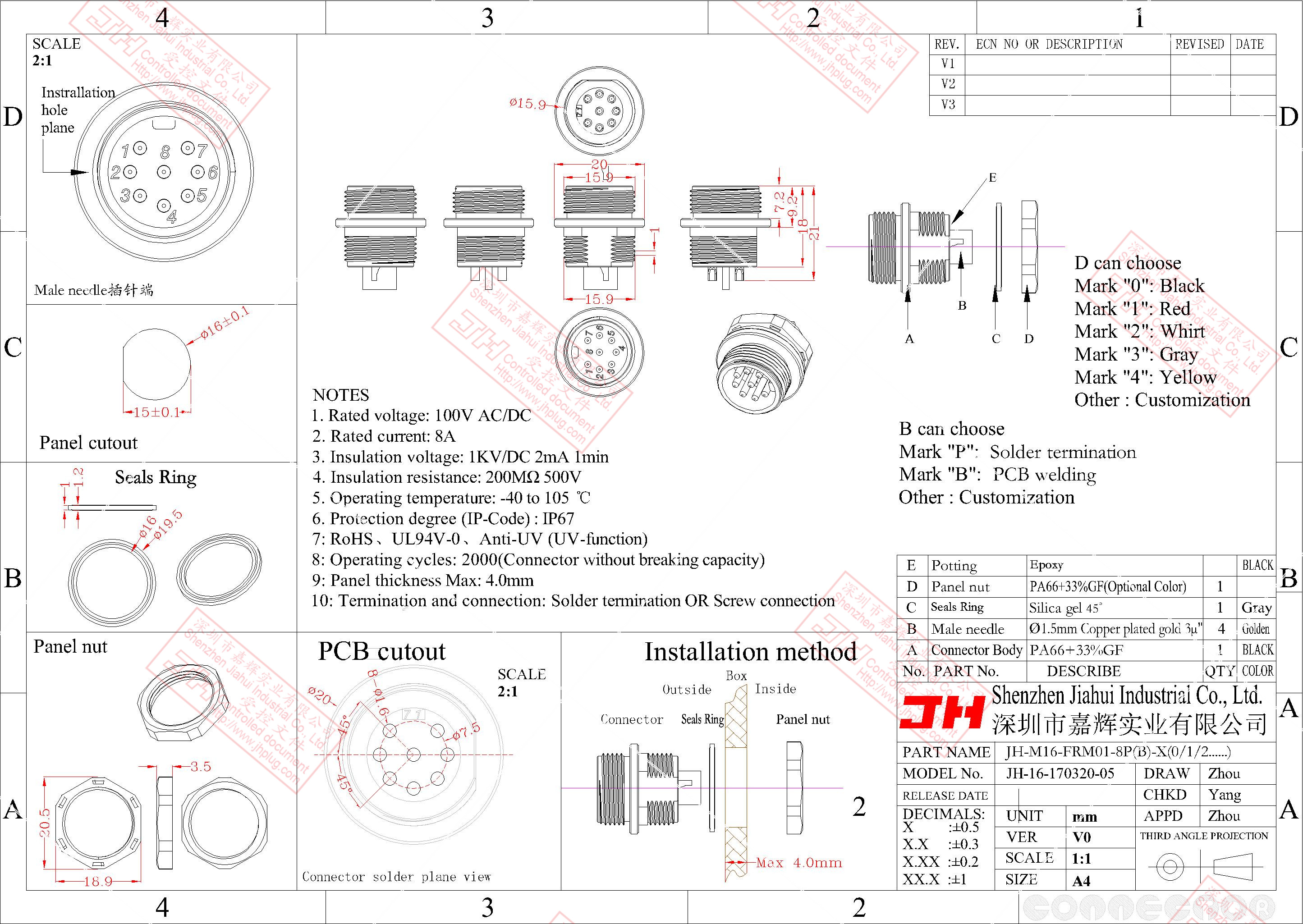 1、多款式的內(nèi)芯設計(2、3、4、2+4、8、12芯),符合多樣性的工業(yè)需求,信號及電源同時兼容匹配。