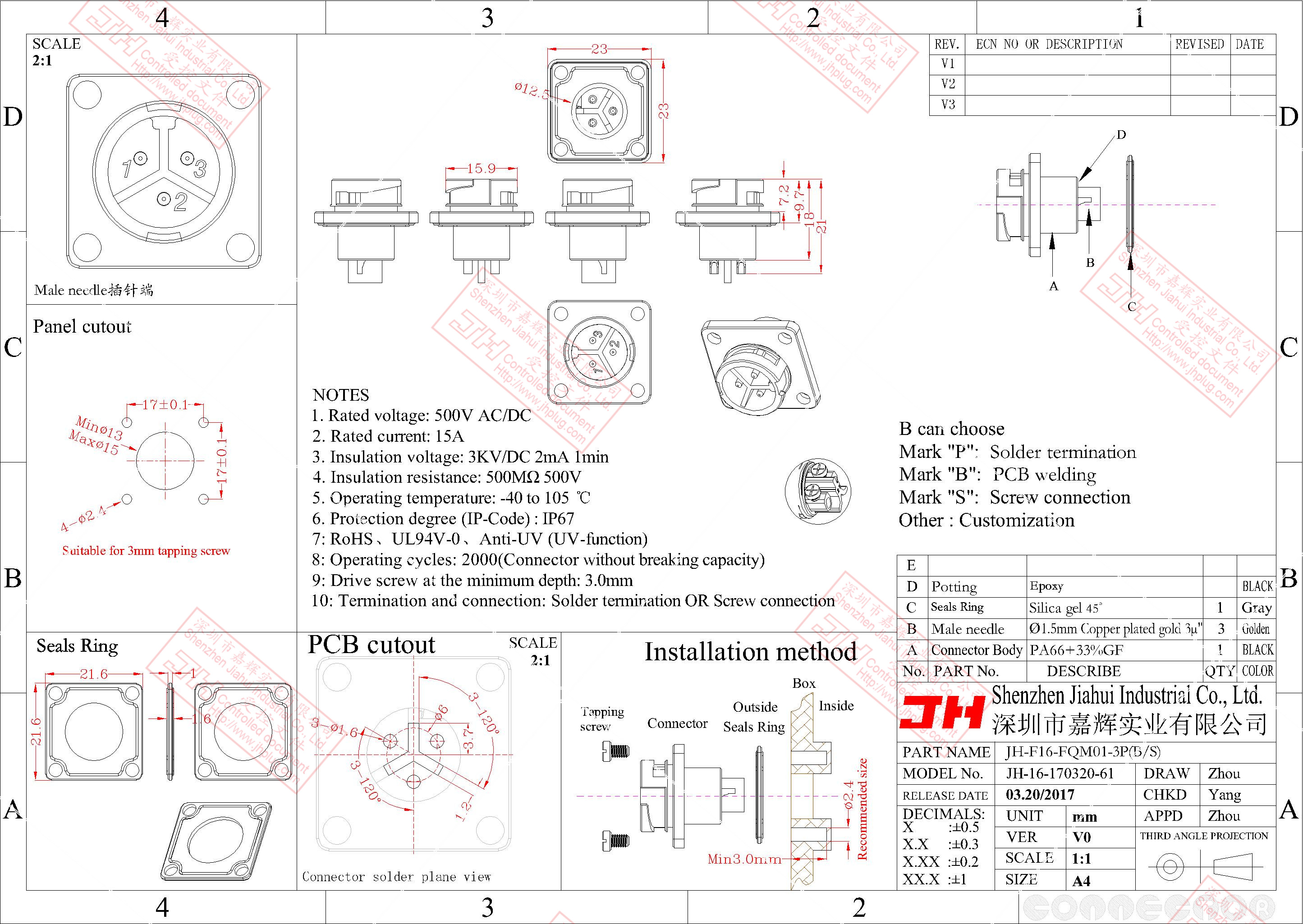 3、尼龍材質(zhì),穩(wěn)定的電氣性能,高強(qiáng)的抗耐壓,抗高溫,抗爆,抗腐蝕性。