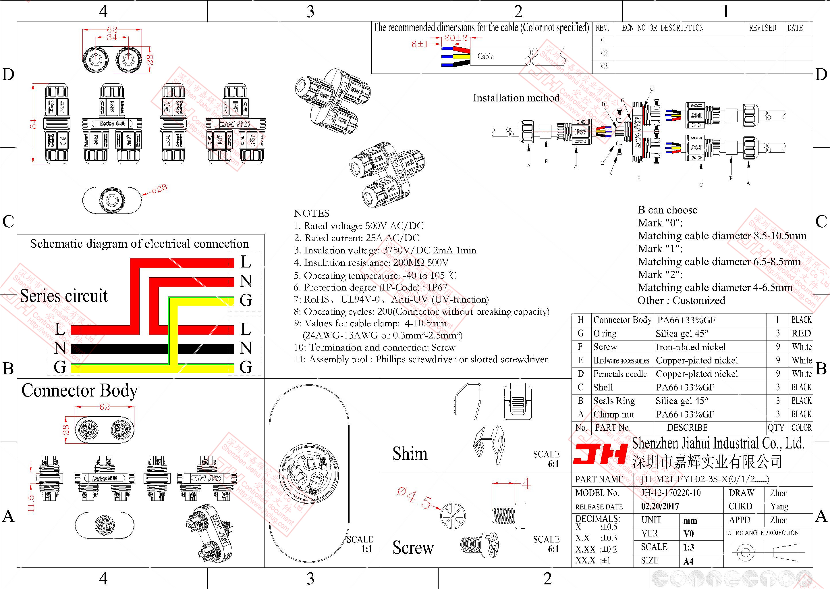 3、尼龍材質(zhì),穩(wěn)定的電氣性能,高強(qiáng)的抗耐壓,抗高溫,抗爆,抗腐蝕性。